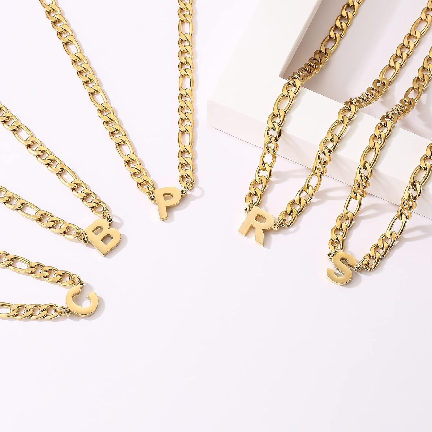 The Stainless Steel Figaro Letter Necklaces can represent the initial of your name or symbolize the initial of a loved one’s name or the initial of a memorable place, allowing for a personalized touch that resonates with your unique story.