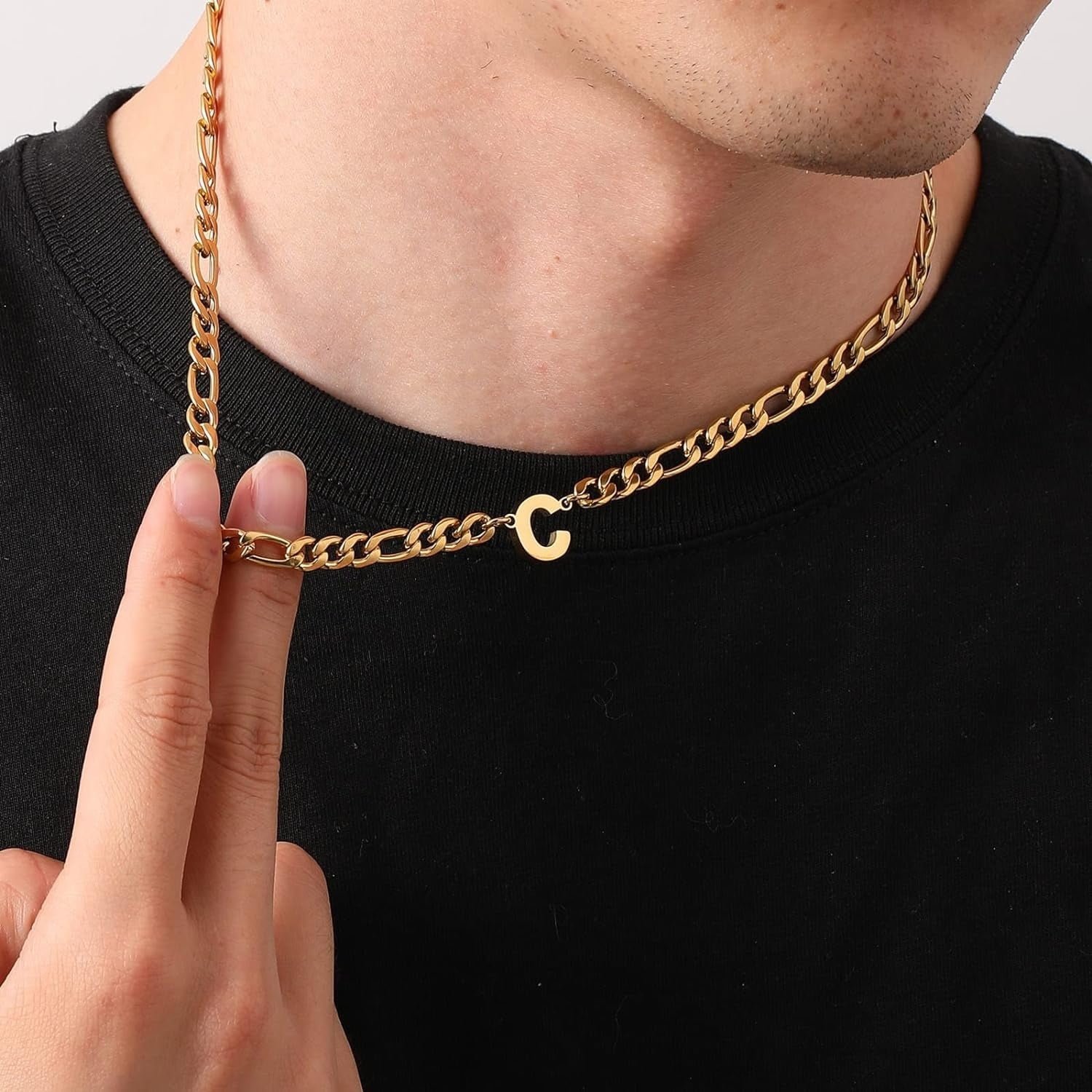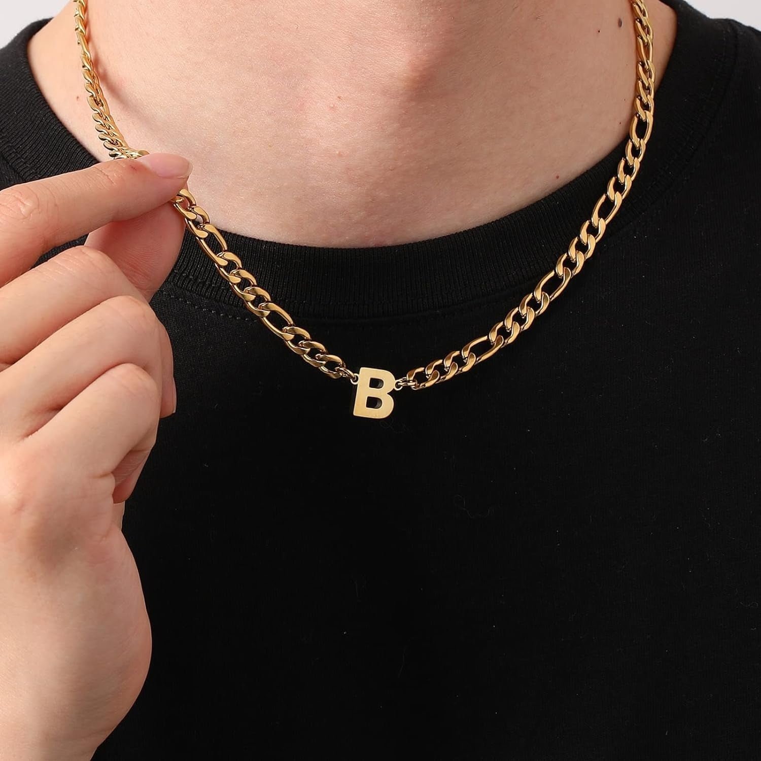 Introducing our Stainless Steel Figaro Letter Necklaces, this combination includes a delicate Figaro stainless steel chain, making it an excellent gift choice for men and boys.The Figaro chain showcases elegance and taste, making it an ideal choice for men to wear on a daily basis.