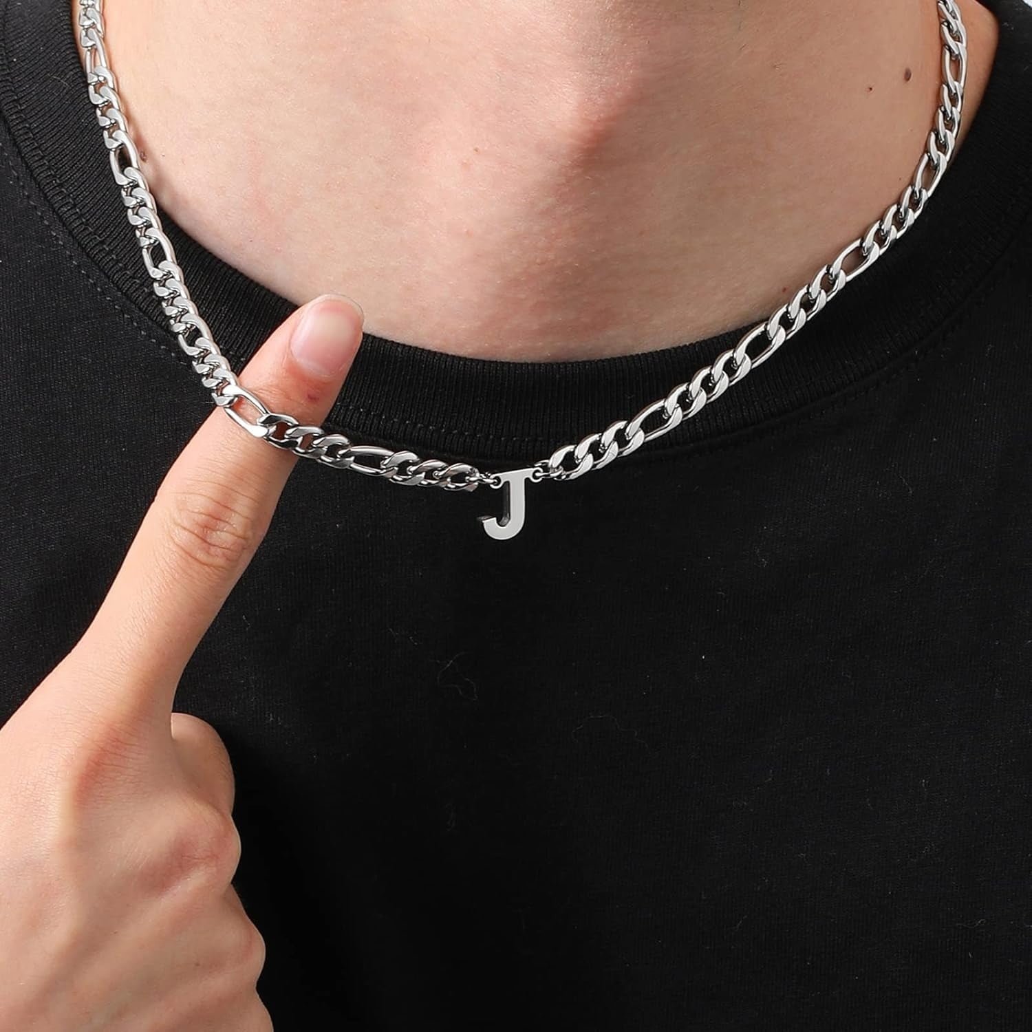 Introducing our Stainless Steel Figaro Letter Necklaces, this combination includes a delicate Figaro stainless steel chain, making it an excellent gift choice for men and boys.The Figaro chain showcases elegance and taste, making it an ideal choice for men to wear on a daily basis.
