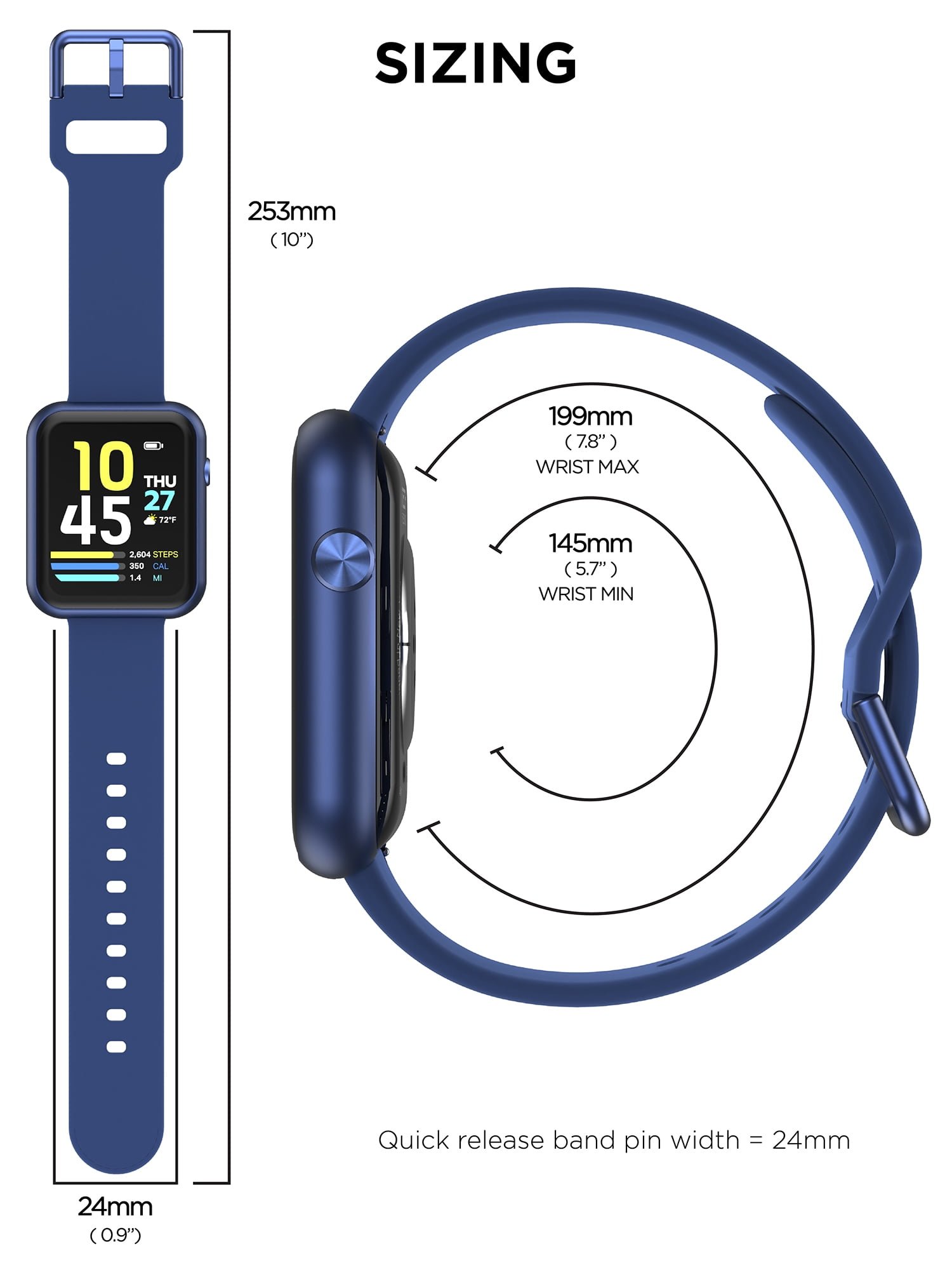 The iTech Fusion 3 Smartwatch is loaded with a variety of workouts and activities. This rectangular smartwatch has a built-in pedometer, 24/7 heart rate, and a blood oxygen monitor that automatically tracks your steps and distance, calories burned, cardiovascular activity, and sleep. Collects data tailored to a particular exercise so that you can track your improvement over time. Your workout history is available in the watch and in the iTech Wearables app (Workouts under one minute are not logged). You can also activate Sports Mode and choose from 100+ different sports and workout options to get real-time stats and 13 Workout metrics points. Your iTech Fusion 3 smartwatch is suitable for both adult men and women. It’s equipped with a number of useful features to help you stay connected and live a healthy life. You can set goals for steps, calories burned, and distance in the iTech Wearables app, as well as receive notifications, hydration and sedentary reminders. Additionally, it offers relaxation mode, camera and music remote, weather information, stopwatch and alarm. These features are accessed by swiping right from the main watch face and you can easily customize the view. – Pairing your watch with a smartphone is quick and easy! Simply pair it to any Android or iPhone using the iTech Wearables app* and stay connected for updates (*requires iPhones running iOS 13 or higher and Android 10 or higher). Your smartwatch comes with limited battery charge and should be charged completely before first it’s use. When fully charged, it has a battery life of up to 7-days.