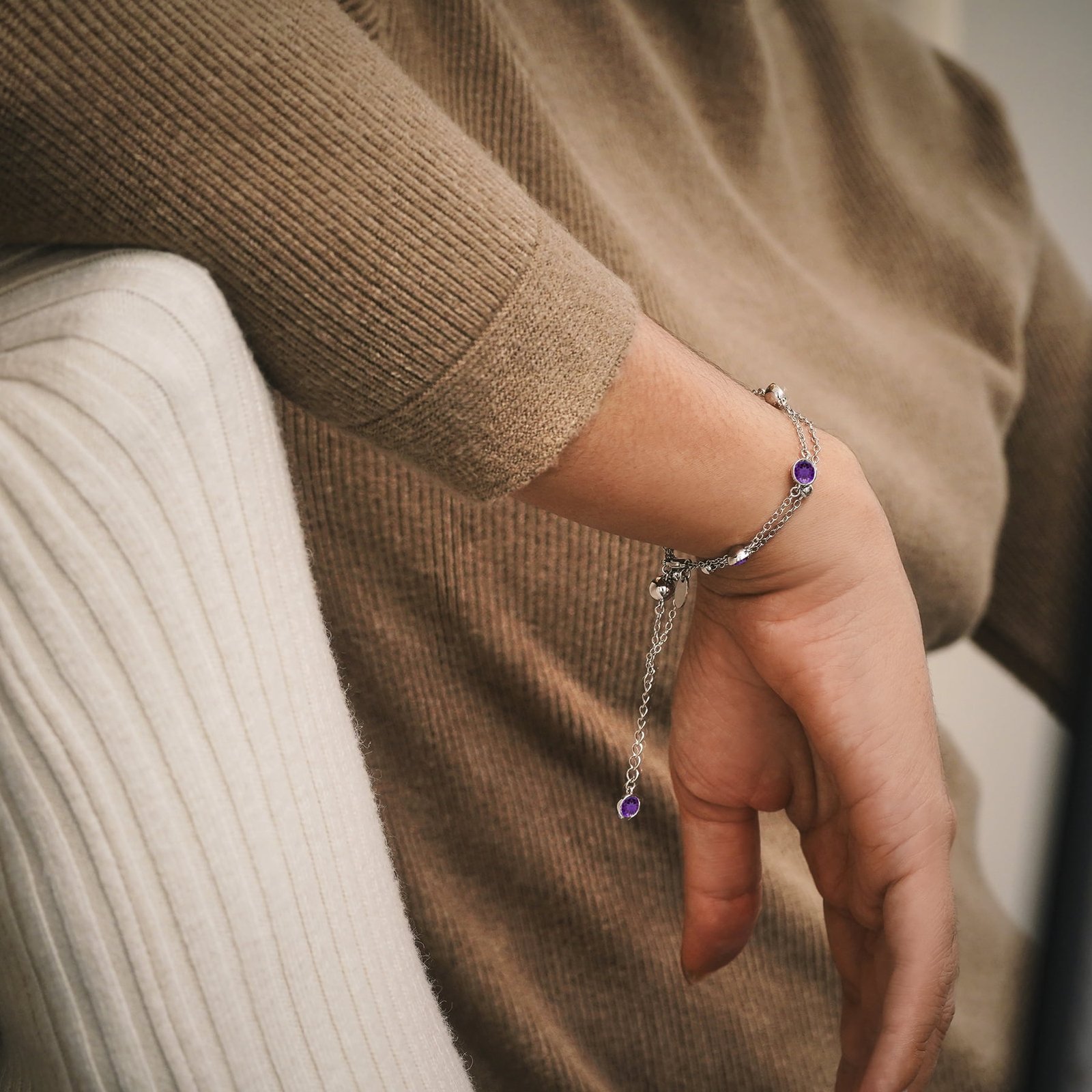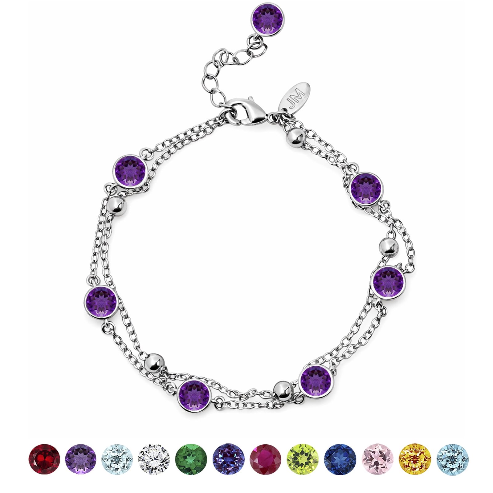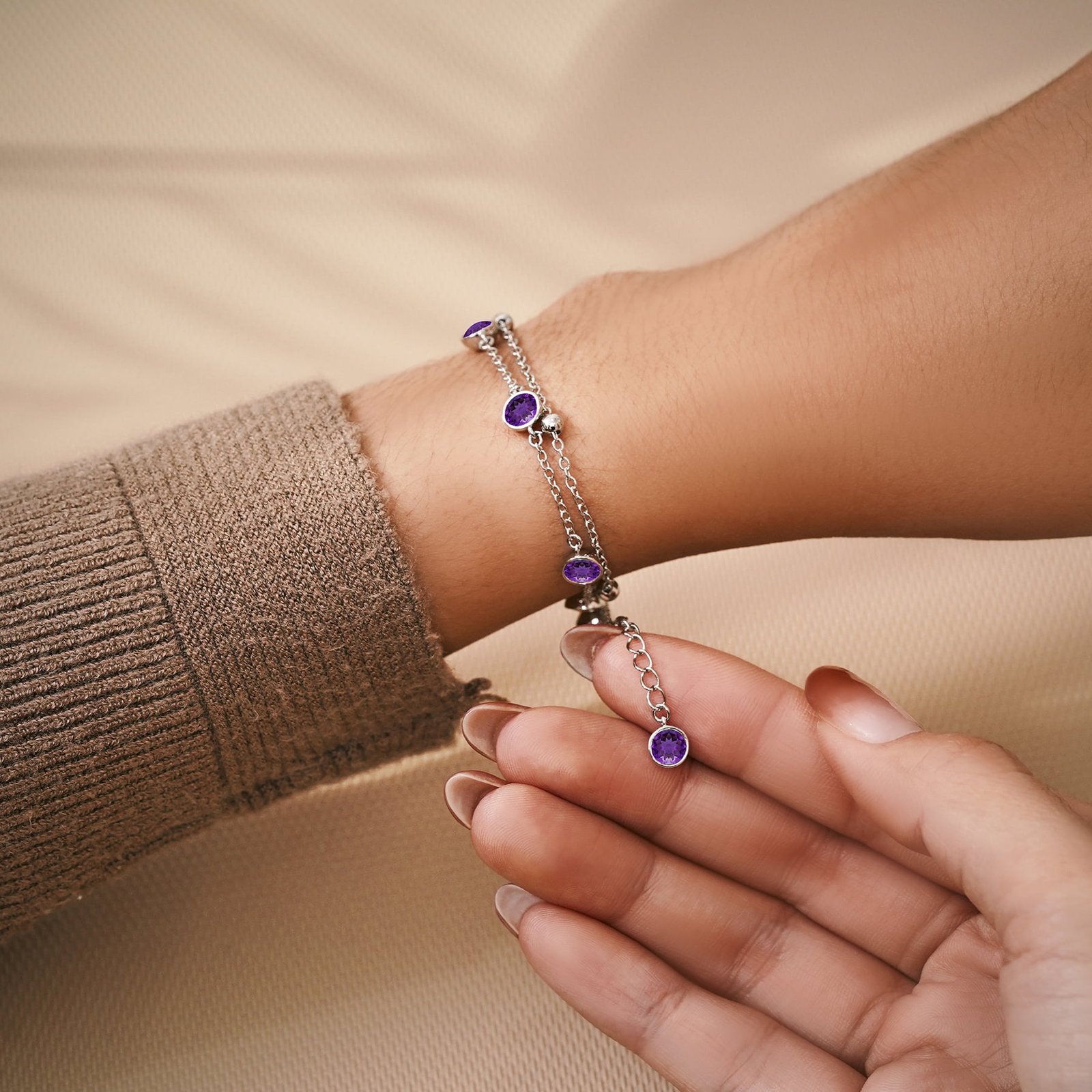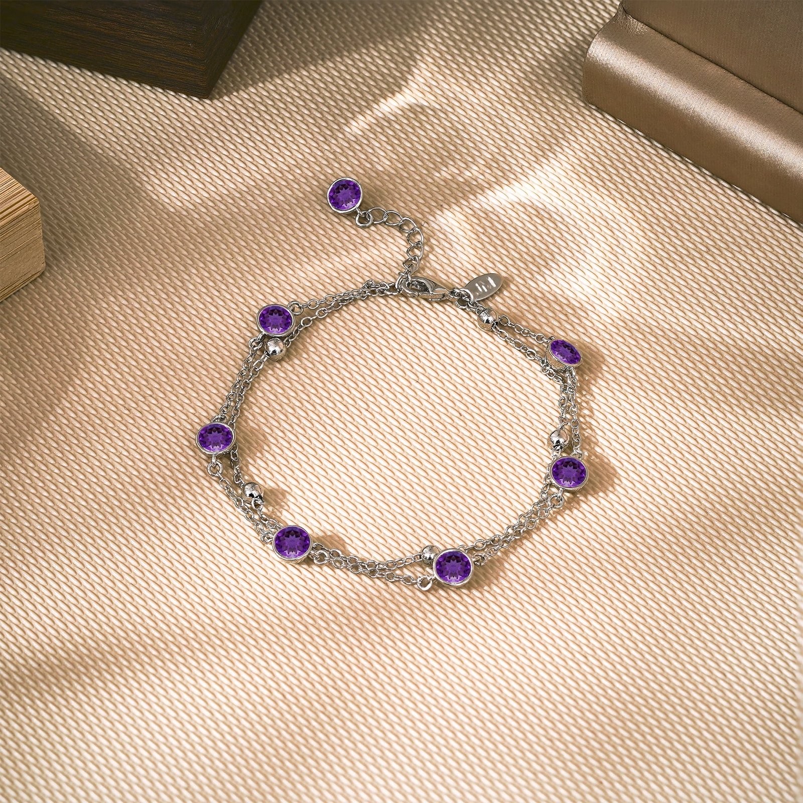 JeenMata 3.5 Carat February Amethyst Birthstone Double Layer Bracelet – in White Gold Plating for Women