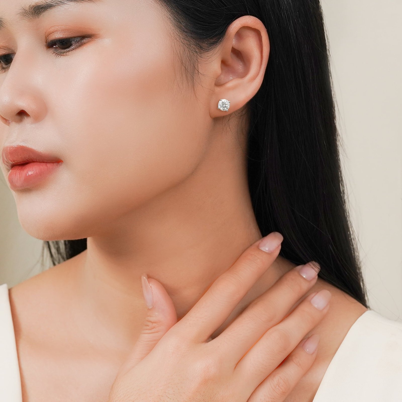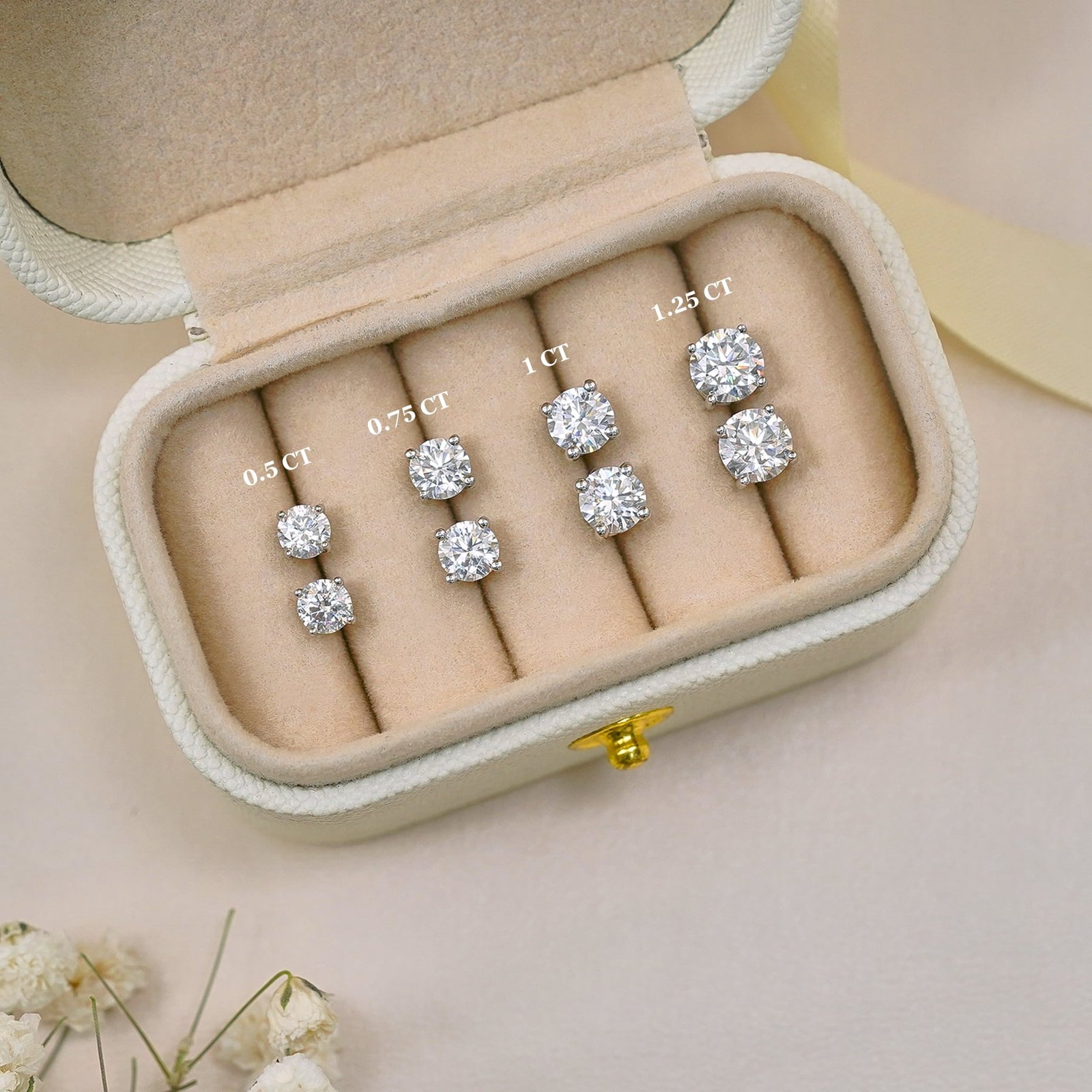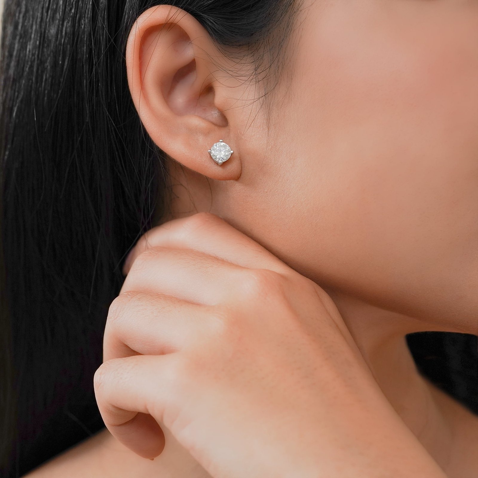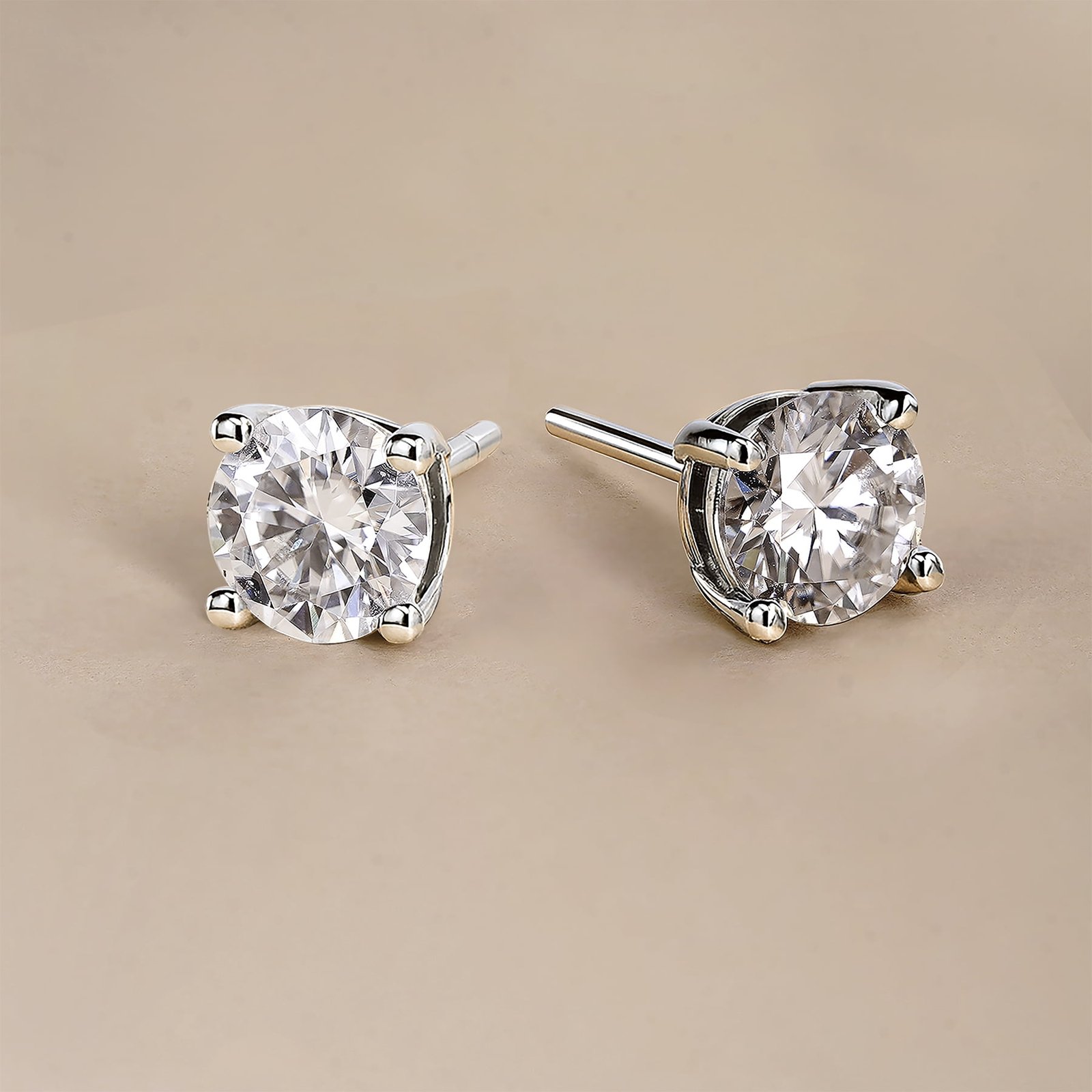 Sustainable fine jewelry addition, the JeenMata Lab Grown Diamond Earrings 1.25 Carat Round Cut 18K White Gold Plated Solitaire Studs for Women feature a brilliant 1.25 carat lab-grown diamond, secured in a four-prong setting for maximum brilliance and stability. Plated in white gold over brass, these studs combine the luxurious appeal of white gold with the durability of brass, making them perfect for daily wear or special occasions. Lab-grown diamonds are known for being ethical and eco-friendly, offering a sustainable alternative to traditional mined diamonds. They have the same beautiful sparkle and clarity but are conflict-free and better for the planet. These earrings are a perfect choice for those who care about the environment and still want stylish, high-quality jewelry. They pair effortlessly with any outfit, from everyday wear to special occasions.