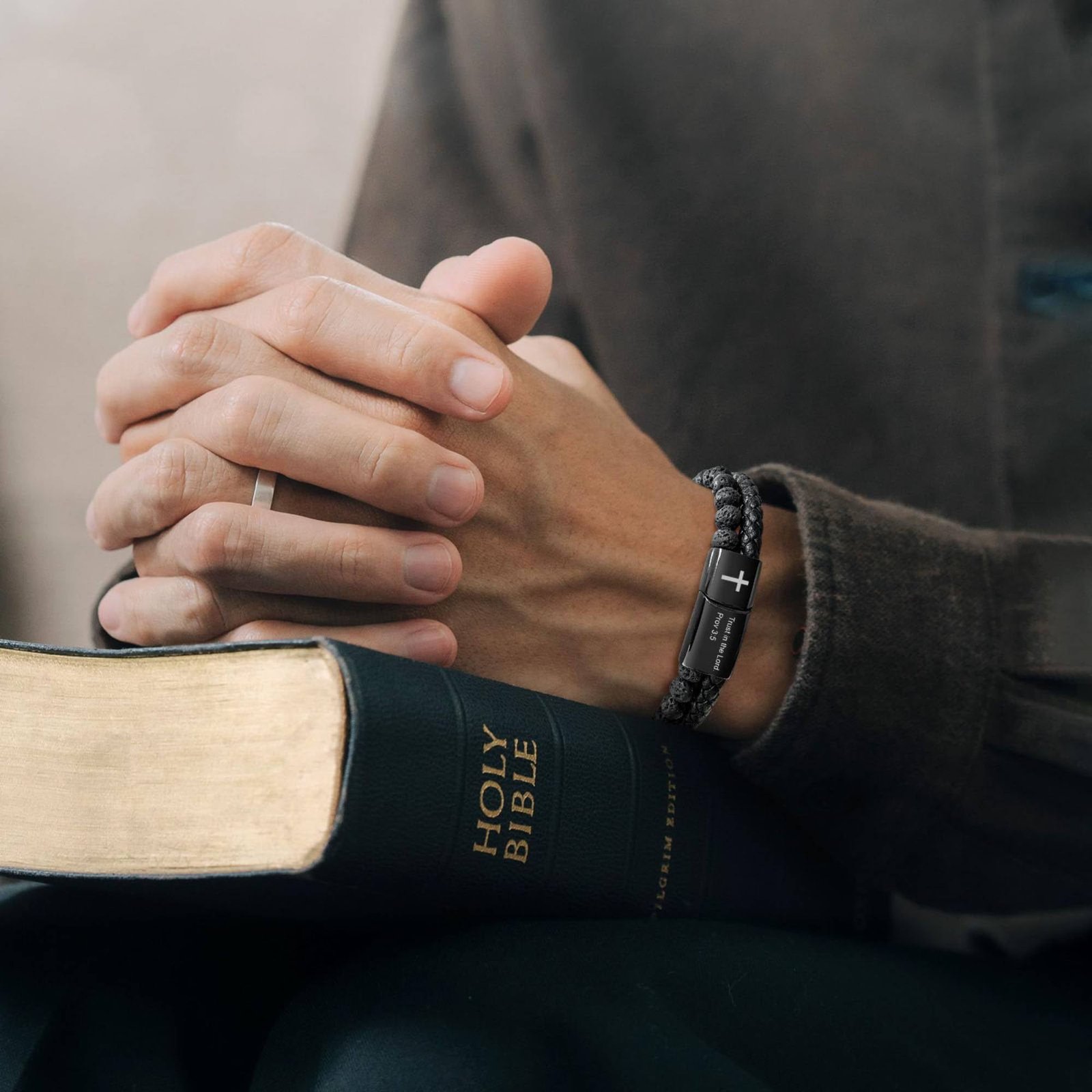Men’s Inspirational Bible Verse Bracelets Lava Rock Bead Bracelet Healing Balancing Braided Leather Wristband