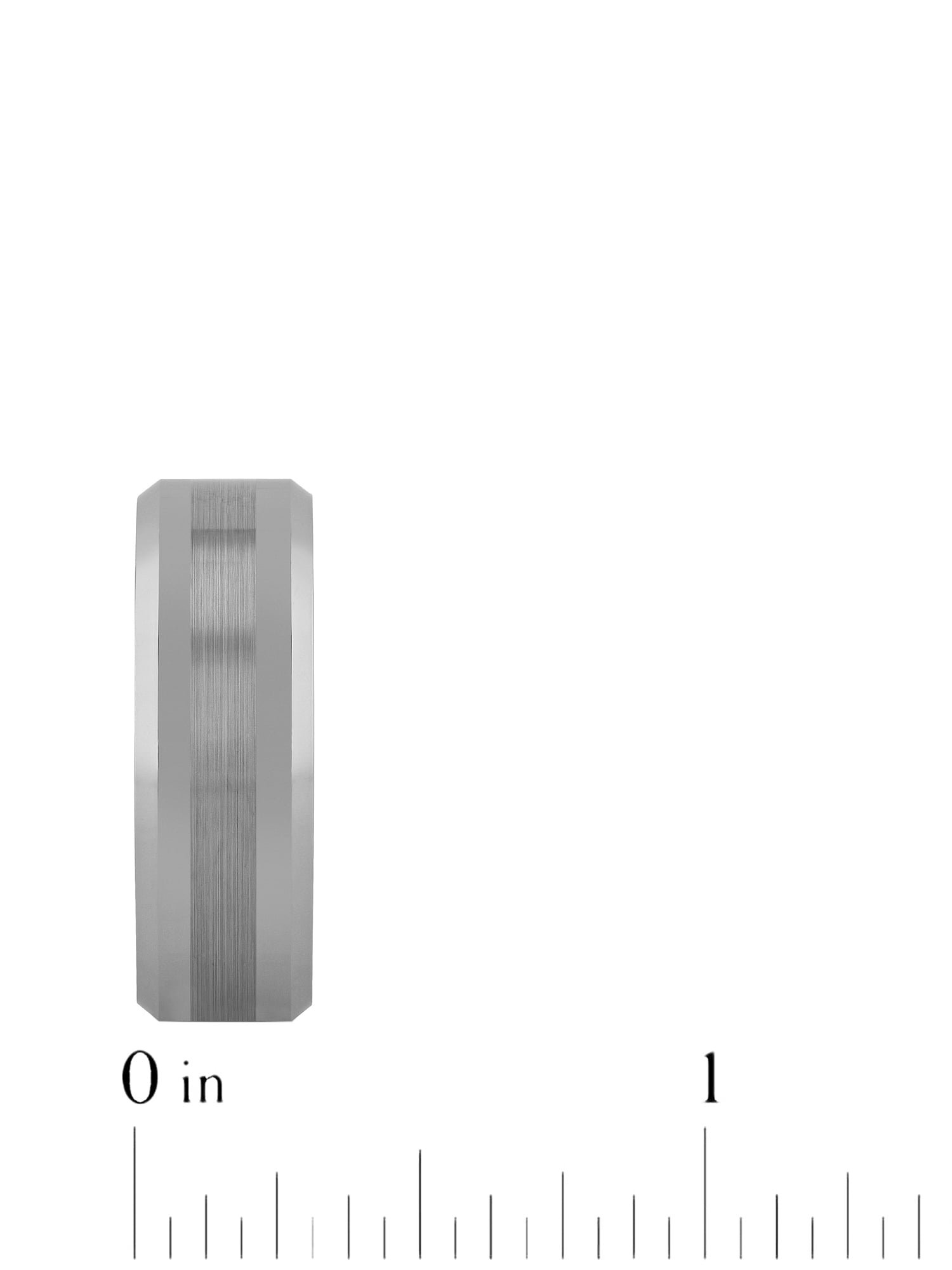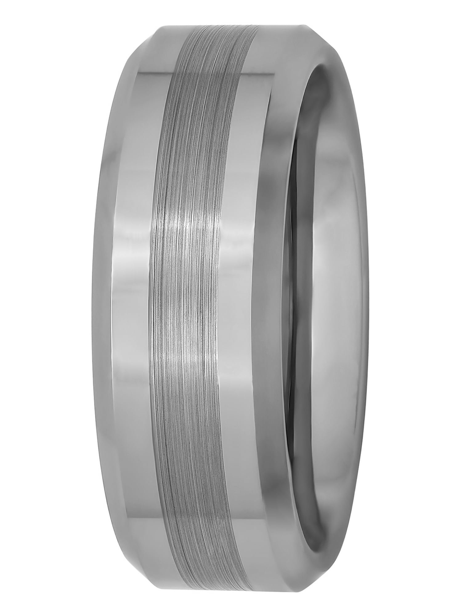 This Men’s Beveled and Satin Center Ring in Tungsten is a timeless symbol of love and commitment. Crafted with precision from durable tungsten, this band features a sleek beveled edge design complemented by a satin center finish, creating a sophisticated contrast. Perfect for those who value both style and durability, this ring is designed to withstand the test of time. Whether exchanging vows or as a daily reminder of your bond, this elegant piece will make a statement of enduring love and style.