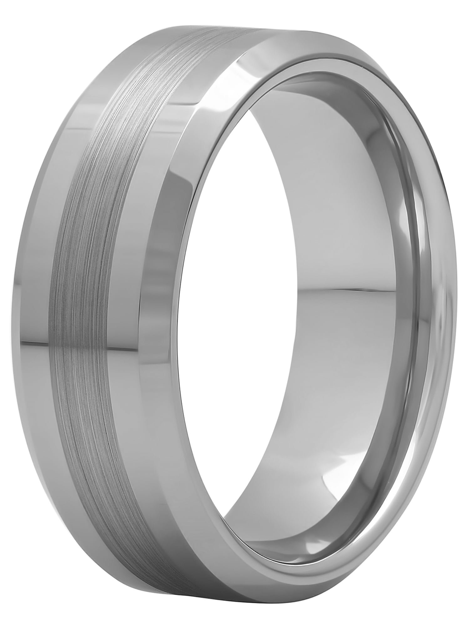 Men’s Beveled and Satin Center Ring in Tungsten by Brilliance Fine Jewelry – Wedding Band